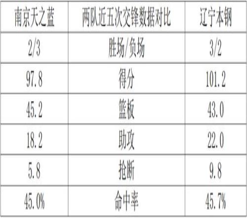两队近五次交锋数据对比: