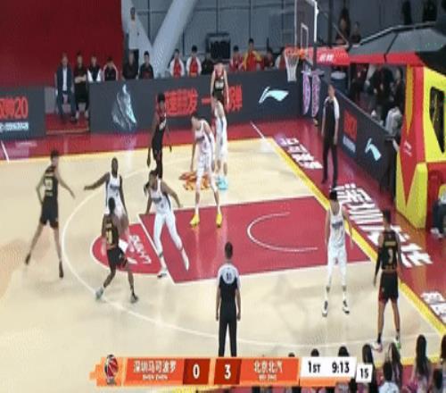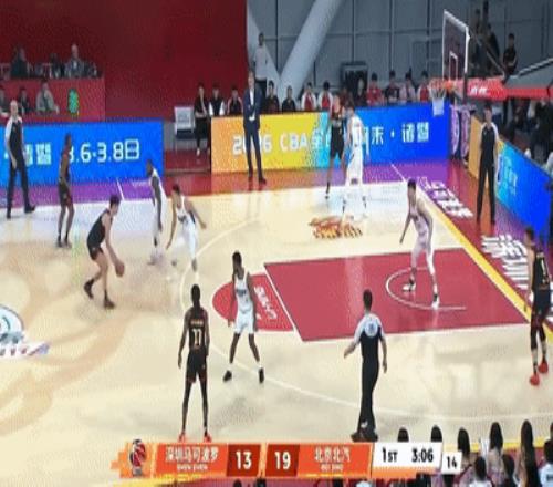 接着,王浩然还持球直面北汽内线,在周琦头上完成突破上篮。