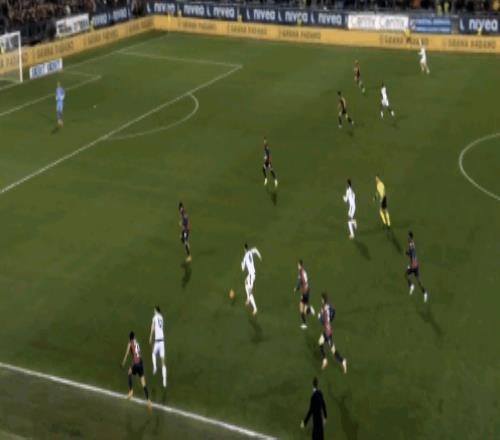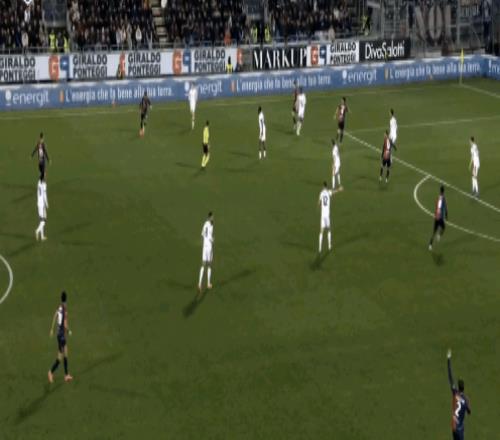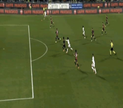 而奇克选择自己来,但靠个人能力把后卫晃开拿到一点空间时,却没有果断射门,最后两次横敲实际上都没有影响到卡利亚里的防线。