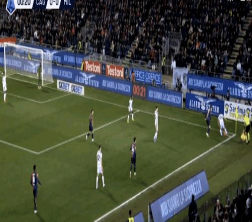 06:17,卡利亚里再次完成传中,米兰继续在后点先解围成功。