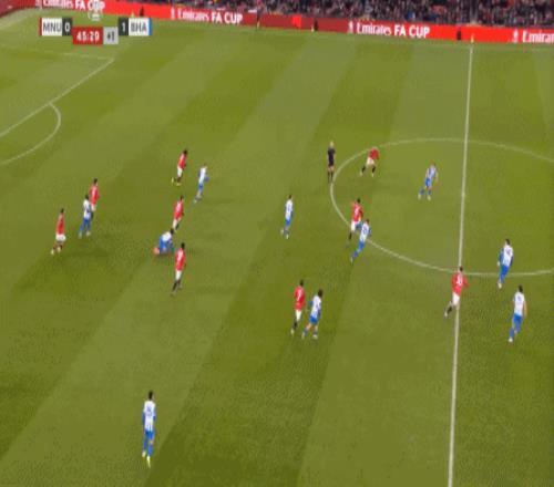 你还别不相信,因为在第31分钟这次防守,布莱顿又用转移打到了曼联的左路,你看是谁在和芒特一起防守?